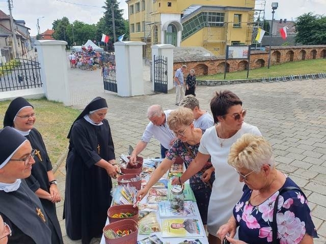 Po Mszy św. parafianie mogli zaopatrzyć się w książki o ks. Zygmuncie, dewocjonalia oraz w prace ręczne wykonane przez dziewczyny podczas zajęć arteterapii. Stoiskiem dzielnie zajmowały się s. Antonina i s. Jakuba.